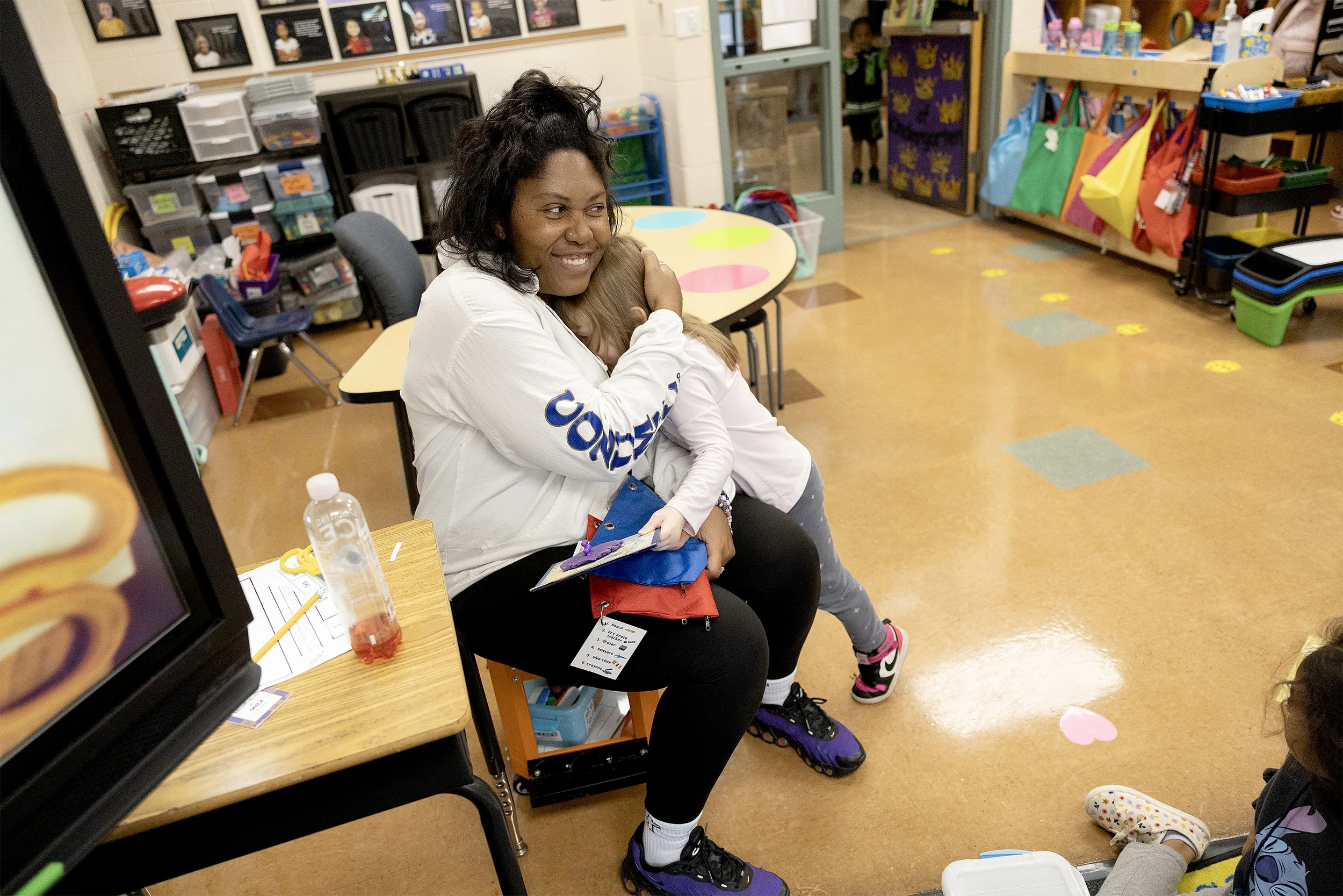 Students regularly reach out to Carr for hugs.