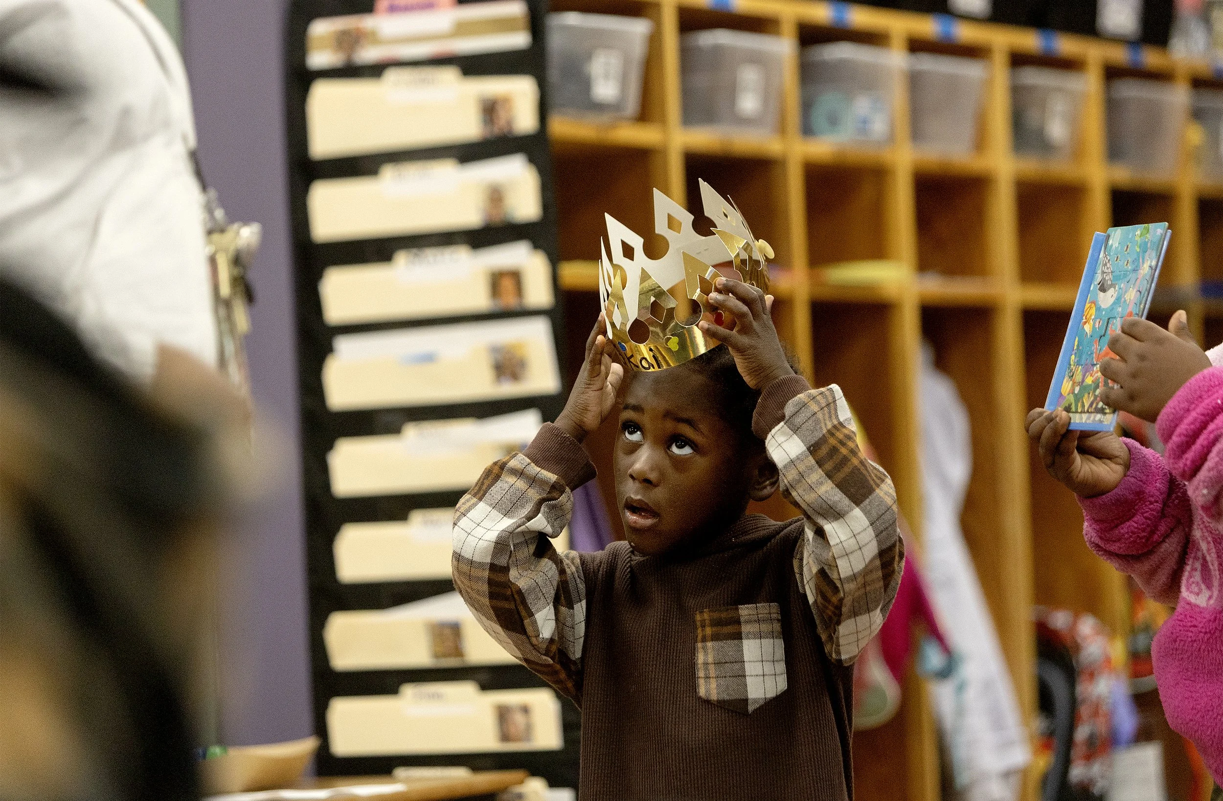 On the first day of kindergarten, Carr gives her students crowns and tells them they are kings and queens, and that they must act accordingly. Jakaki Hall periodically came to class wearing his crown.