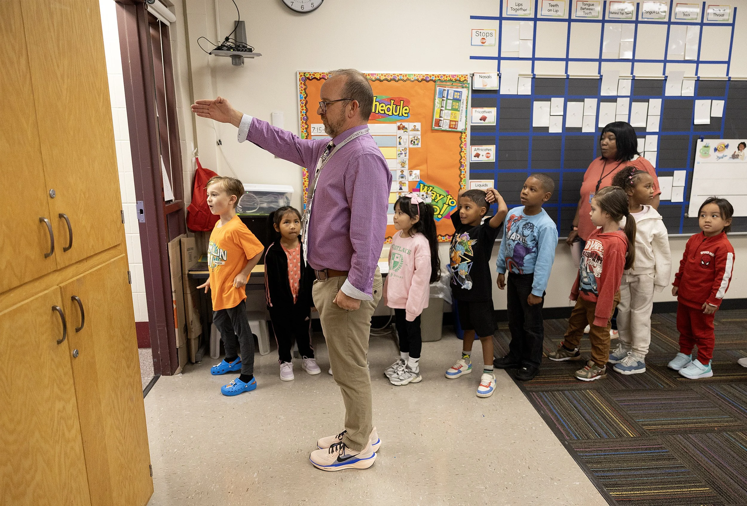 Ryan Nelson does not waste a single minute teaching his kindergarteners at JennyLind Elementary School. Even a trip to the bathroom is precious time for them to learn the importance of following rules and working as part of a collective.