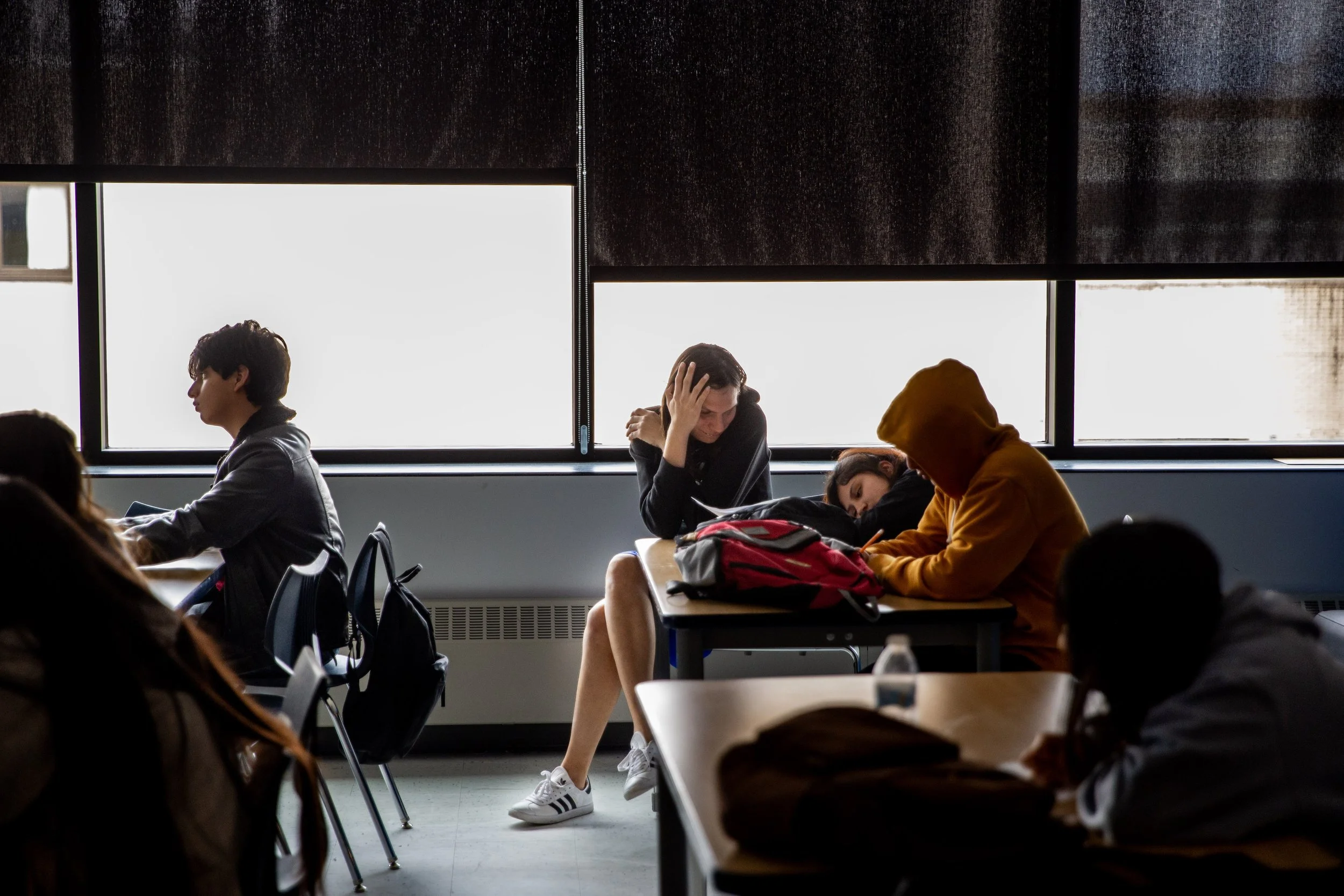 Towards the end of the day, Benavente Hobart sits with students one-on-one to help them with assignments. Help comes slowly, as she’s the only bilingual educator in a room full of ELL students. Photo By Azhae’la Hanson