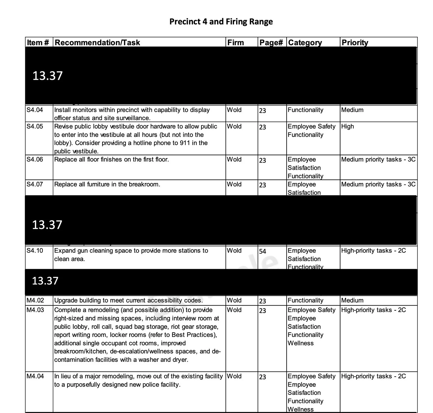 Every precinct except Precinct 5 lists “move out of the existing facility to a purposefully designed new police facility,” as a high priority on its suggested repair list.